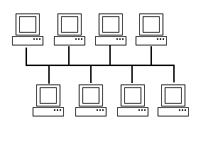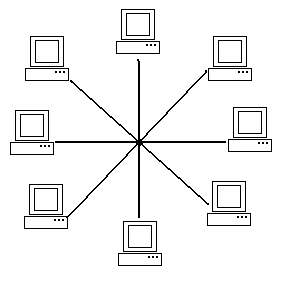 sa používa v dvoch sieťach a to v sieťach Arcnet a v sieťach Ethernet - krútená dvojlinka. Počítače sa prepájajú pomocou rozvetvovačov (rozbočovačov alebo hubov).