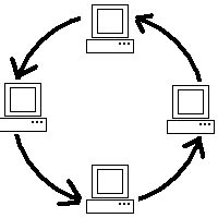 sa používa v sieťach Token Ring firmy IBM. Keďže sú počítače spojene do kruhu, signál (Token) ich postupne prechádza všetky. Ktorý počítač ma signál, môže vysielať, ostane počítače môžu len počúvať. Týmto je odstránená možnosť vzniku kolízii pri súčasnom vysielaní niekoľkými stanicami, ako je to známe zo sieti typu Ethernet. Dnes sa v týchto sieťach používa prenosová rýchlosť 16Mbit/sec. Nevýhodou tejto Topológia je horšia inštalácia siete a obmedzený počet stanúc v kruhu.